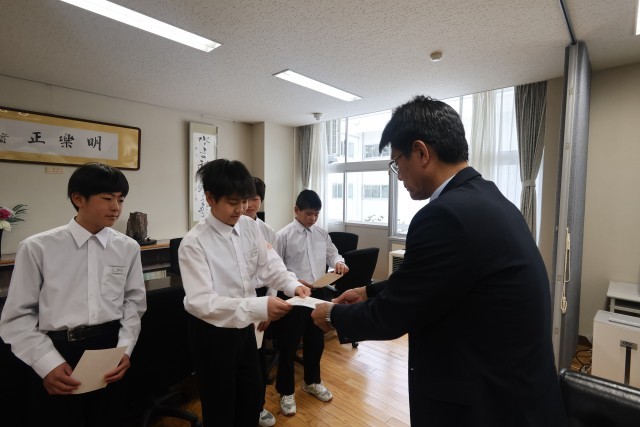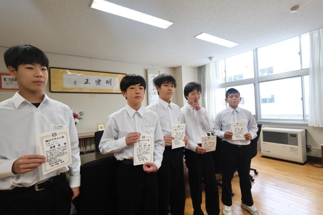 1年生の有志5名が「堀川プライド賞」を受賞しました。担当ではない日も、全校生徒のために自ら進んで除雪に励んでくれました。周囲を思いやる5人の温かい行動が、冬の登校路を明るく照らしました。