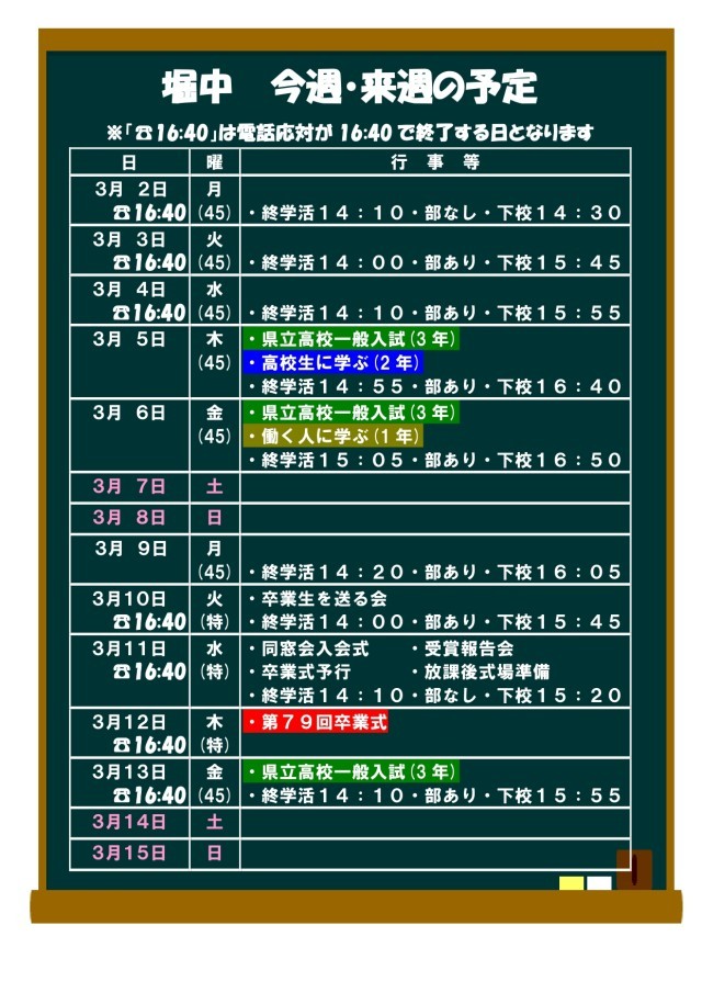 3月2日(月)〜3月15日(日)の予定