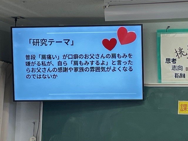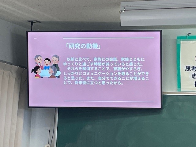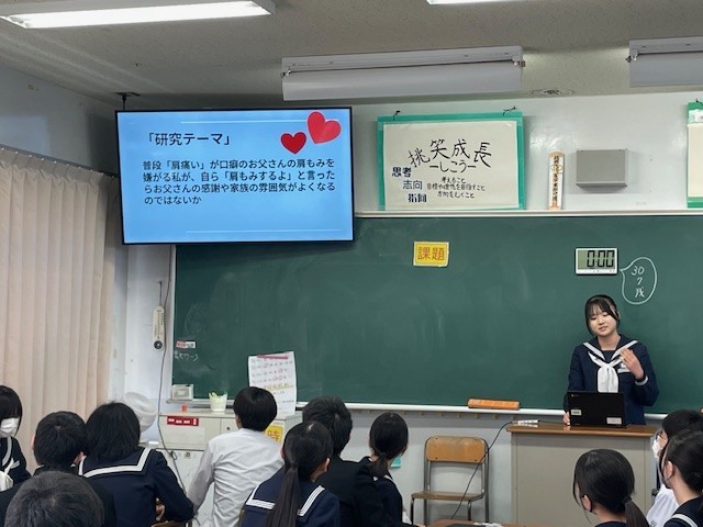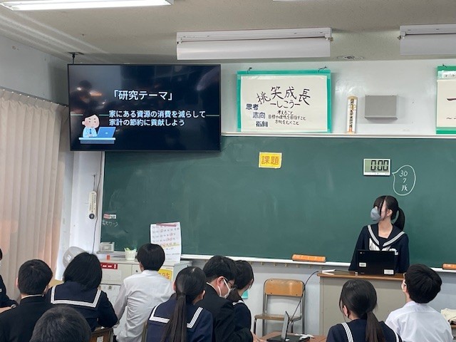 というテーマで、3年生の家庭科では、3年間の学びをいかして自分の家庭生活を見つめ直す探究活動を行いました。
