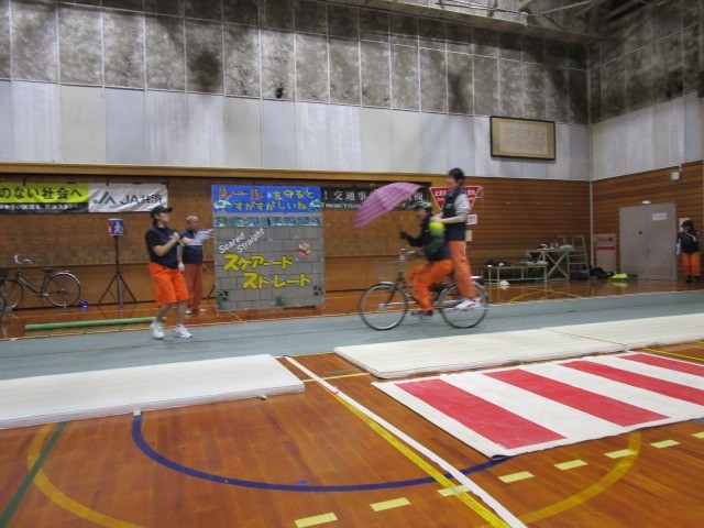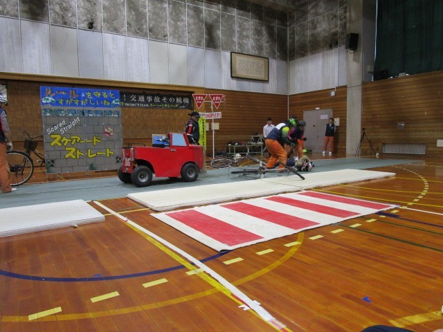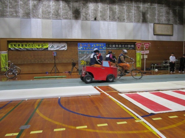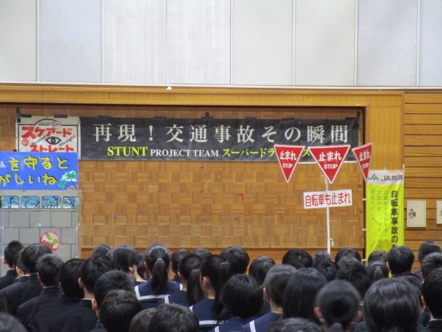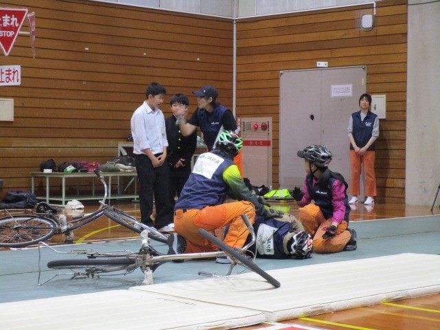 中学校や高等学校で交通安全教室を開催し、スタントマンが危険な自転車走行に伴う交通事故の再現を行っています。生徒に交通事故の危険性を疑似体験させる教育事業(スケアード・ストレイト教育技法)を通じて、安全な自転車の利用を伝えています。