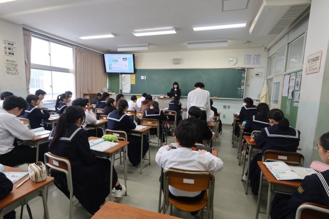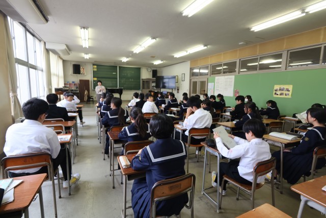 2年生、2時間目の授業の様子です。6組は音楽、7組は英語を受けています。説明を真剣に聞いたり、発言したりする様子が見られました。どのクラスも頑張っています!