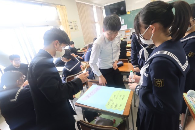 3年生は学活の時間に修学旅行の班別コースについて調べたり、学級の掲示物を作成したりしました。