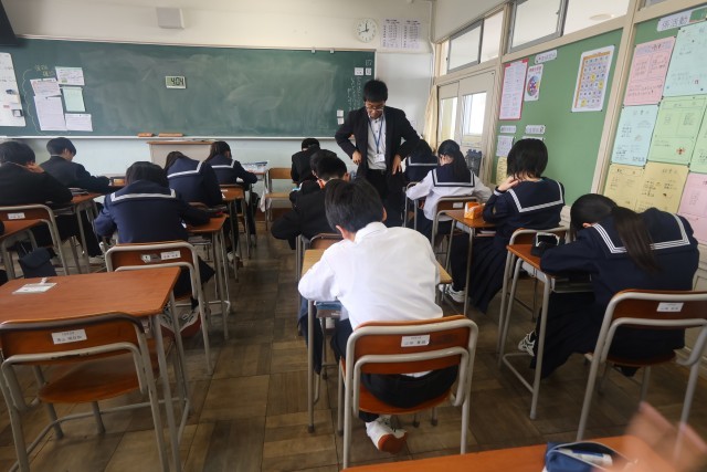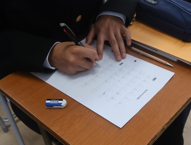 1学年4限の授業の様子です。英語は、アルファベットのテストをしていました。