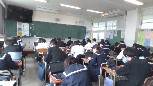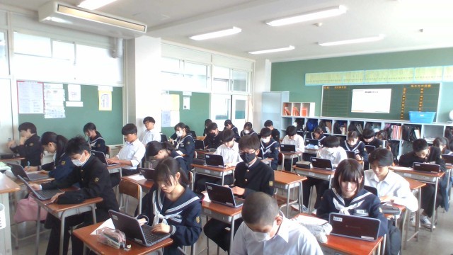 5月の修学旅行に向けて、3年6組では事前学習を行いました。クラス別学習訪れる京都の寺社について、インターネットを用い、その歴史や魅力を調べています。教科書の写真の景色を実際に行って見られることを楽しみなようです。