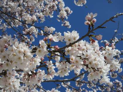 毎年、この桜の前でクラス写真が撮影されます。今週は晴れが続く予定で、入学式の日には、満開の桜が見られそうです。