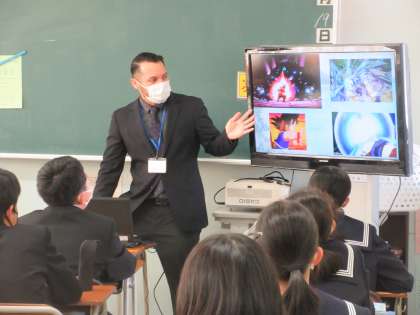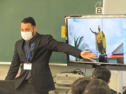 ALTディーン先生の英語の授業では、ドラゴンボール悟空のかめはめ波と、カメハメハ大王との違いを英語で分かりやすく説明していました。