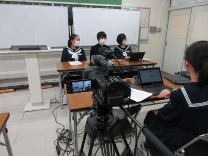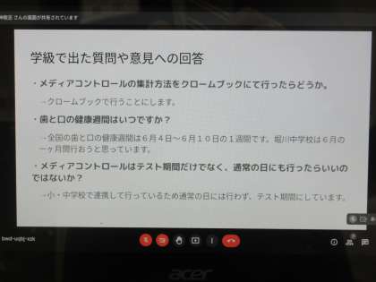 クロームブックを使ったスライドの進行や画面共有等は、生徒が行います。