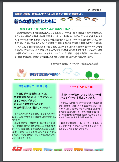 5月1日(日) 富山市立学校 新型コロナウイルス感染症対策検討会議だより Vol.18(4/28号)