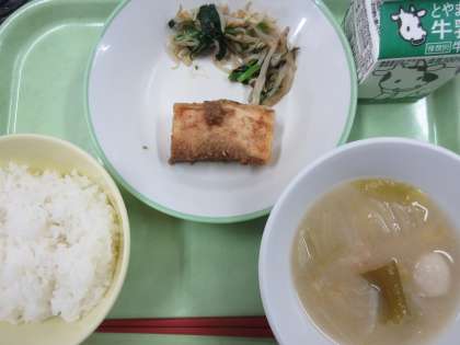 ごはん、揚げ出し豆腐のごまだえかけ、昆布和え、つみれ汁、牛乳