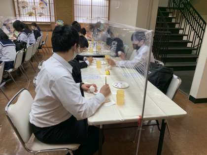 2組 京都ハンディクラフトセンターで絵付けに挑戦しています。