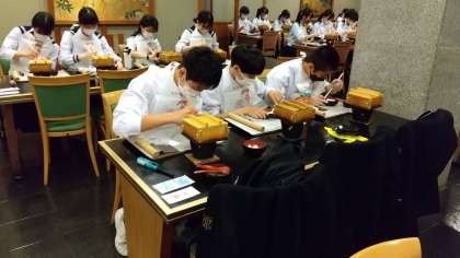 9組 八つ橋つくり、真剣です。