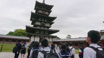 5組、薬師寺に来ています。法話を楽しく聞きました。