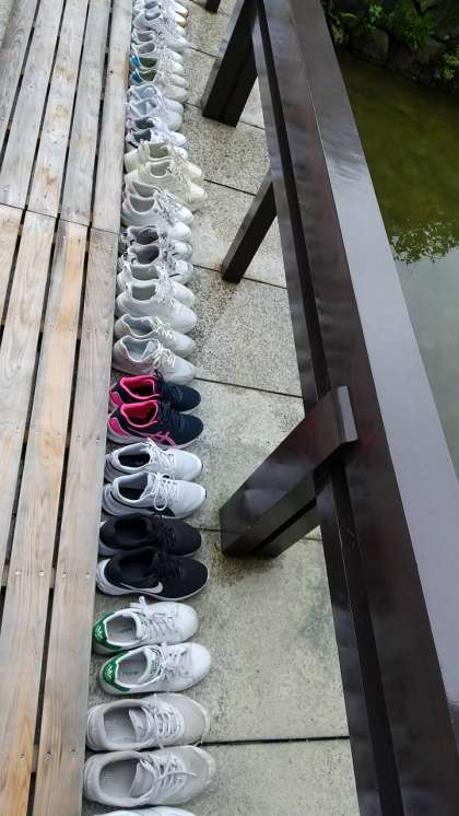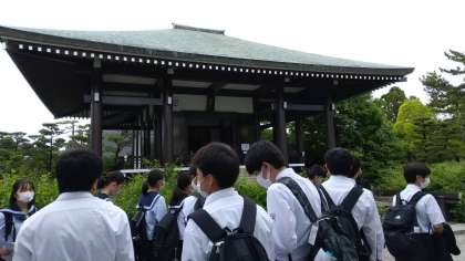 1組 中宮寺に来ています。気付くと靴が揃っていますね。これこそ、堀川プライド!