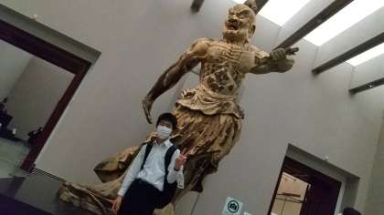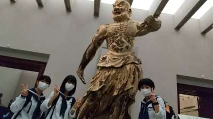 6組 国立博物館にて。迫力ある像の前でもピース!(撮影許可の出ている展示物です)