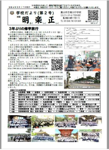 5月17日(火)、学校だより第2号を発行しました。