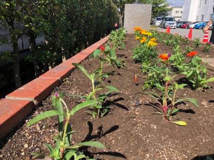 毎年、「富山市花いっぱいコンクール」に応募しています。綺麗な花が咲くように、委員全員で整備しました。