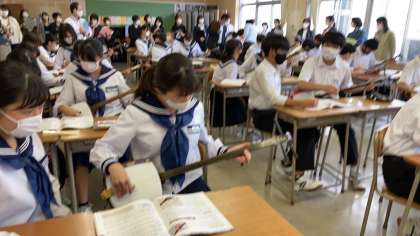 6月6日(月) 研究授業を市内の教員へ公開しました。 (2年4組音楽)