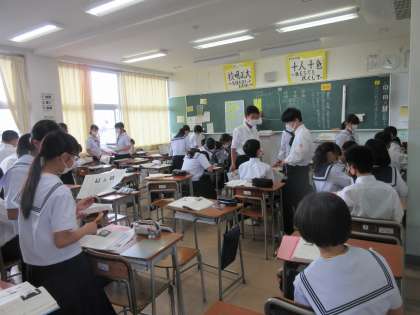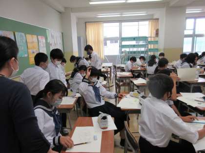 全員が課題を達成できるよう、分からないところを教え合っています。