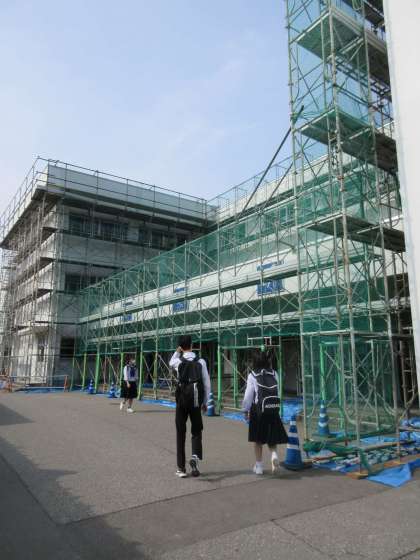 学校では、登校した生徒が部活動や学習に取り組んでいます。