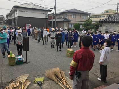 朝、蜷川地区センター前に集合し、注意事項を聞いてから活動を開始しました。地域の方が刈った草をゴミ袋に詰め、運搬する作業を中心に行いました。