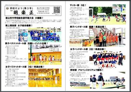 6月22日(水)、第3号学校だより(富山市中学校総合選手権大会特集号)を発行しました。