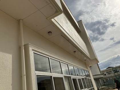 暑い日が続いています。熱中症予防のために、体育館前にミストを設置しました。保健体育の授業や、部活動等、屋外での活動の時間に稼働します。