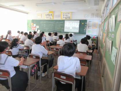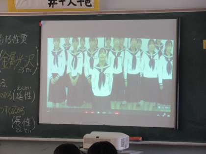 壮行会は、第1音楽室で行われ、Chromebookに接続されたカメラから、全教室に配信されました。