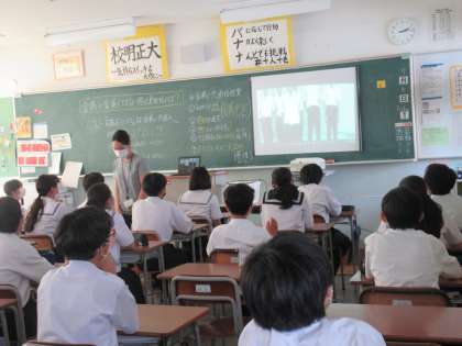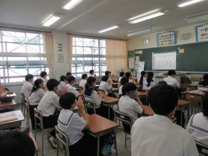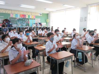 教室では、スクリーンを見ながら、拍手で応援の気持ちを表していました。