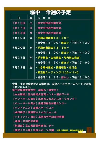 7月19日(火) 今週の予定