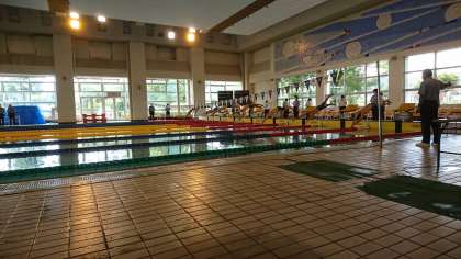 先ほど、男子200m個人メドレー予選があり、赤田君が2:11.38で全国大会出場標準記録を突破し、全中出場を決めました!午後の決勝もがんばります!