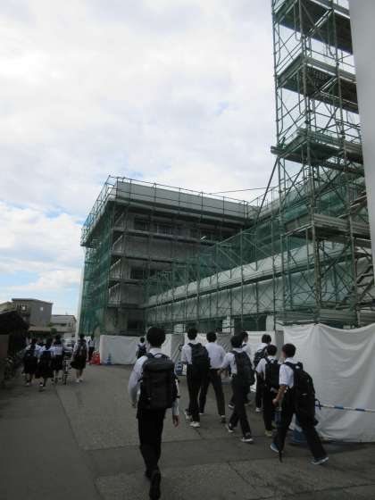 受賞報告、壮行会、意見発表に続き、終業式を校内オンラインで行います。