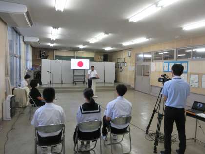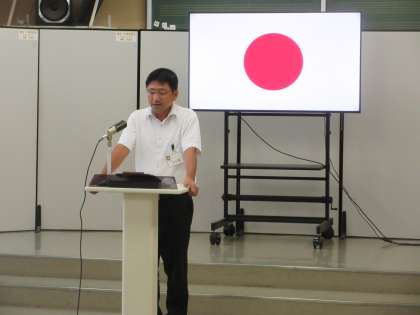 大久保校長先生からの式辞は、ニュースで扱われた事例を挙げて、「人のために行動することはとても大切です。しかし、人のために行動することは、他人のためになるだけではなく、必ず自分のためにもなります。この夏休みは、人のためになること、地域のためになることを、一つでも二つでも行いましょう。」と全校生徒に伝えました。