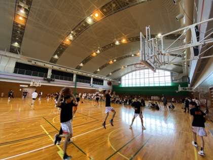 男子バスケットボール部は、県民体育大会に出場します。最後の試合に向けて、3年生一同、気持ちを1つに頑張ります。