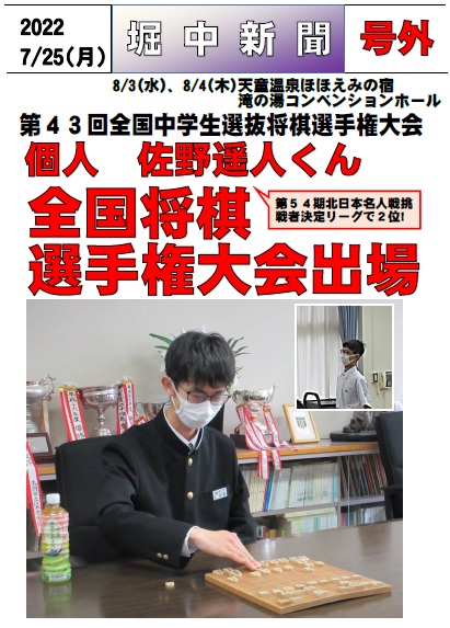 8月4日(木) 第43回全国中学生選抜将棋選手権大会に佐野君が出場します。