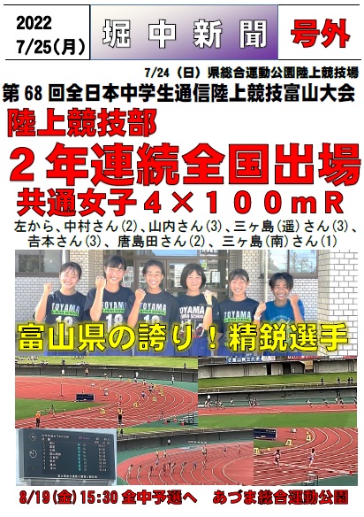 8月2日(火) 全日本中学校 陸上競技選手権大会出場!