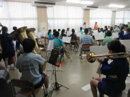 8月11日(木・祝日)に教育文化会館で行われる予定の、吹奏楽部サマーコンサートへ向けて練習に取り組んでいます。