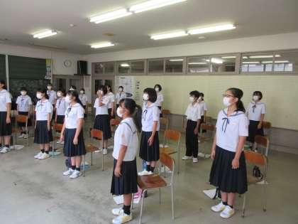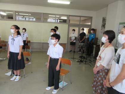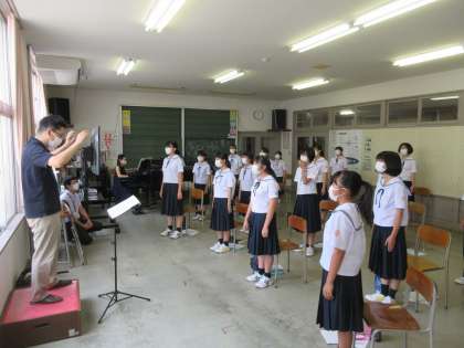 本日8月9日(火)午後から、砺波文化会館で行われる第89回NHK全国学校音楽コンクール(富山県コンクール)に向けて、会場へ行けない教職員に向けて合唱を披露しました。
