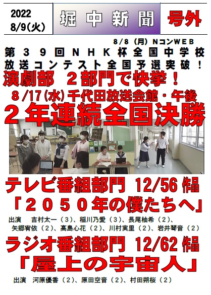 速報 演劇部 第39回NHK全国中学校放送コンテスト 2部門で決勝へ