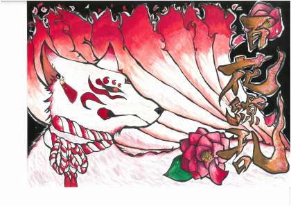 今年の薬師団のデコレーションのテーマは「百花繚乱」です。今回の作品の見所は、赤色の統一感です。統一感を出すことで色が美しく見え、一目で団の雰囲気が分かるようにしました。文字にも工夫を施し、ハネやハライを炎のように表現しました。また、赤い椿にも注目してください。赤い椿の花言葉は、「ひかえめな美しさ」や「気取らない優美さ」です。この花言葉がこのデコレーションにふさわしいと思い、椿を選びました。