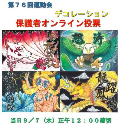 9月2日(金) 第76回運動会デコレーション投票のお知らせ【保護者オンライン投票】