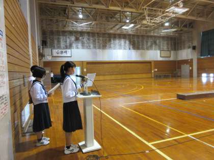 選手宣誓は、男子卓球部部長松浦くんとソフトテニス部部長大橋さんが行いました。