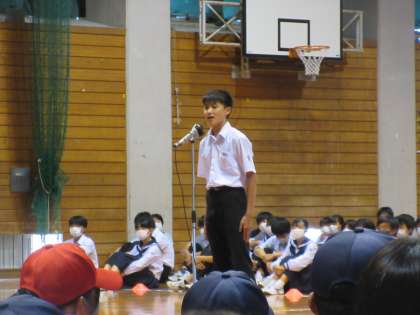 9月14日(水) 市中学校新人大会・県中学校駅伝競走大会壮行会、国民体育大会出場選手紹介