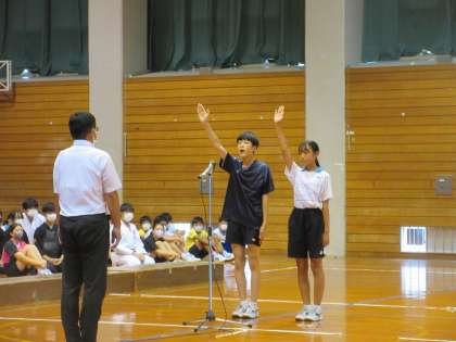 9月14日(水) 市中学校新人大会・県中学校駅伝競走大会壮行会、国民体育大会出場選手紹介