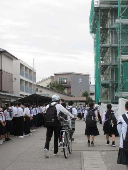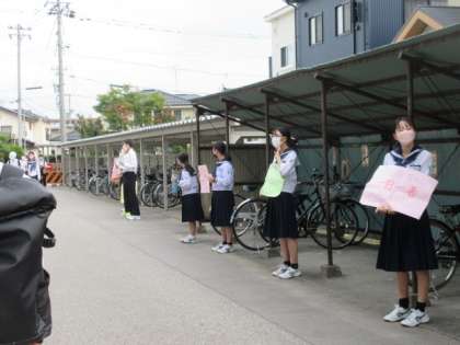 10月になり、後期生徒会の活動がいよいよ本格化します。玄関前では、新旧の執行部が「足元を固めよう運動」の呼びかけを行っていました。5限目には、後期の活動について、学級討議を行います。