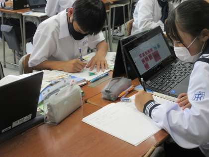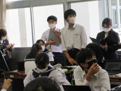 それぞれの意見を「メリット」「デメリット」に分類し、各グループの代表者が意見を発表した後、自分の言葉でノートにまとめました。