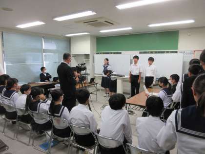 大久保校長先生からは「本校の生徒会が行ってきた活動は、足元を固めよう運動をはじめとして、継続することが大切な活動も多くあります。生徒1003人の心を一つにして、次へのステップへ昇華してください。」と激励がありました。