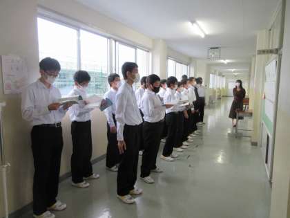 3年生は明日にでも発表できるのではないかと思うほどの豊かな声量、2年生は男女のバランスがとれた心地よい歌声、1年生は初々しい表情で精一杯歌う姿、と、それぞれのよさが伝わってきました。