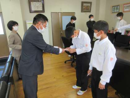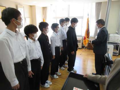10月20日(木)、校長室で、硬式テニス部と硬式野球ボーイズの大会出場激励会が行われました。