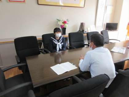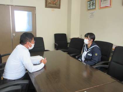 10月21日(金) 科学展覧会で中学校最優秀賞を受賞した永盛さんが校長室で報告を行いました。