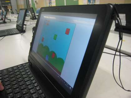 写真中・下のゲームは落ちてくる緑・紫ブロックを取るゲームです。赤ブロックはゲームオーバーです。単純なゲームですが、意外に戦略が必要で、人気ゲームの1つです。